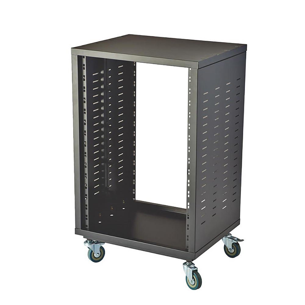 A lightweight and durable open metal rack cabinet designed to mount 19″ rack equipment such as amplifiers, mixers, effects units, media players, networking systems and more. It is delivered with a set of wheels and designed to be open at both sides – the front and the back. The unit is delivered flat-packed.