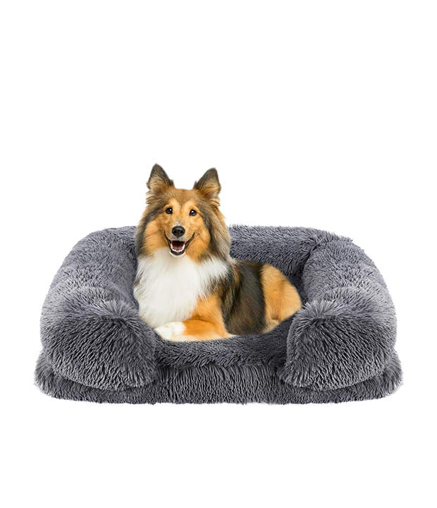 - ?Fluffy Dog Sofa Bed?OCYEMY luxury dog bed special designed with sofa pillow. Your furry friends: dogs or cats can put their head on the pillow to rest. Which will release their pressure greatly and give them a wonderful sleep.