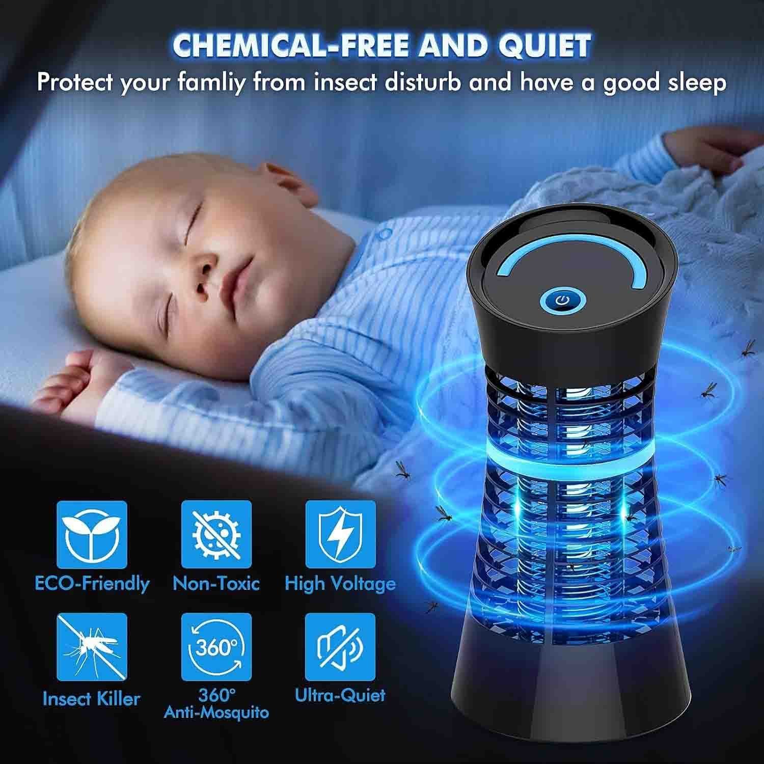 - 【Effective Mosquito Control】The best fly killer uses 4W UV tubes, which can emit ultraviolet light with a wavelength of 330-390nm (wavelength of 365nm is the length of the most effective wave to attract mosquitoes). Use human body bionic technology to effectively attract mosquitoes into the lamp, and then release 1200V high voltage electricity to kill them.