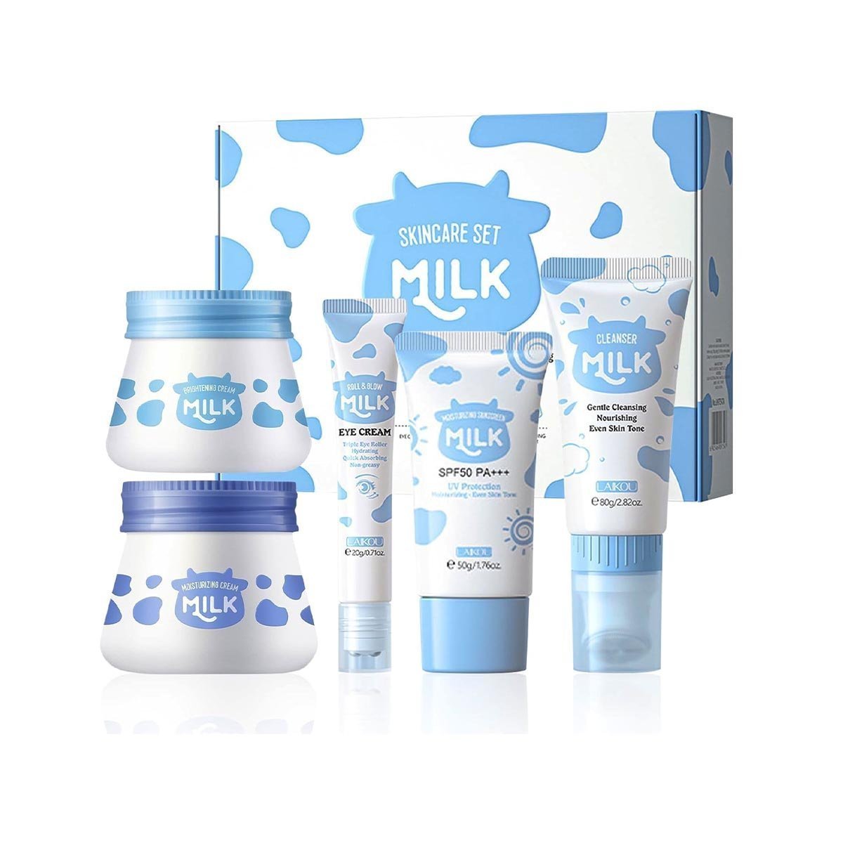 FEXPDL 5 Piece Milk Skin Care Sets & Kits Kids Skin Care Products Milk Protein Skincare Gifts For Teenage Girls, Skincare Set With Cleanser, Eye Cream, Moisturizer, Sunscreen, Brightening Cream