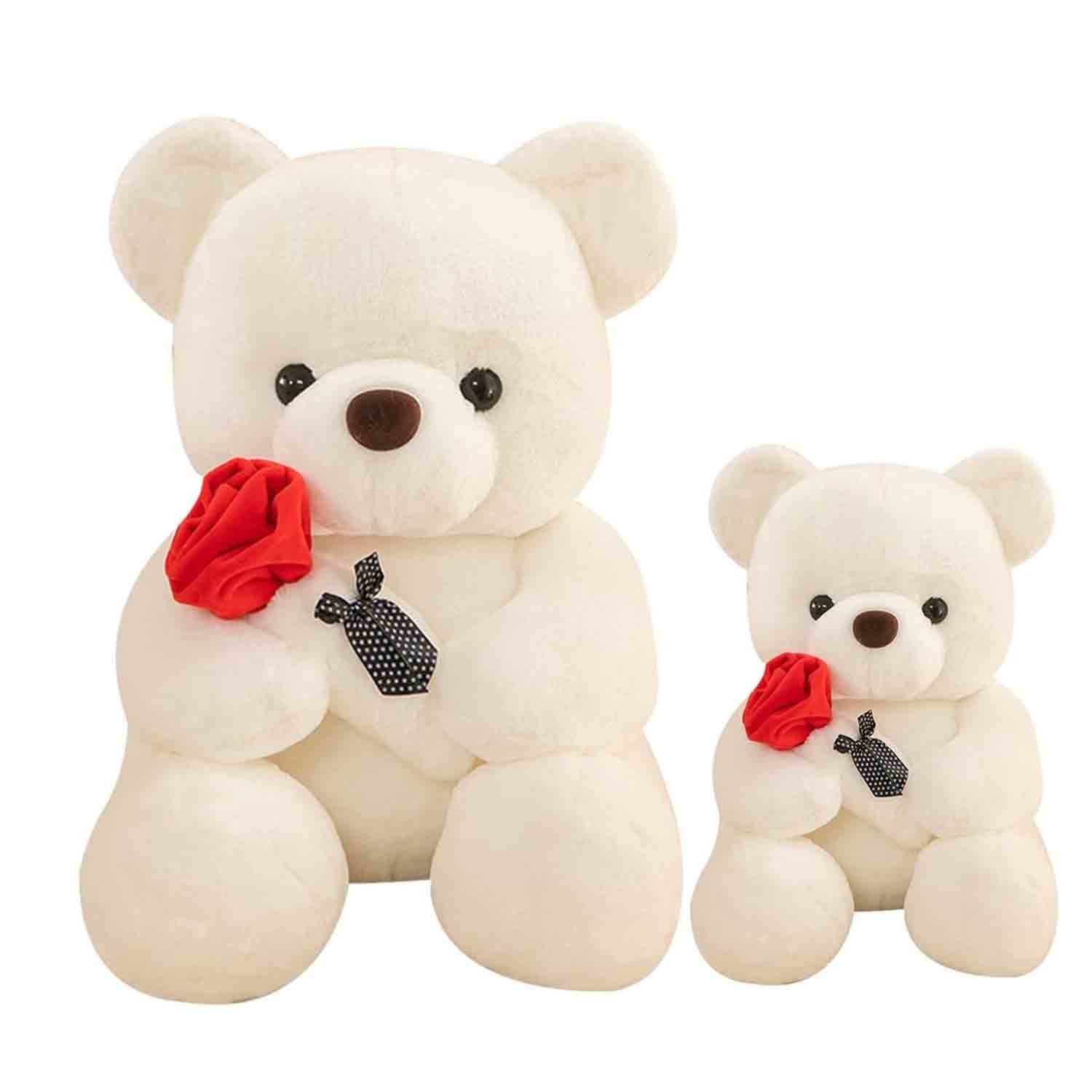 Kekeso Teddy Bear Stuffed Animals, Cute Teddy Bear Plush Toy with Rose, Valentines Day Stuffed Animals Bear Soft Gifts for Girlfriend, Kids boyfriend (White, (25+35) cm)