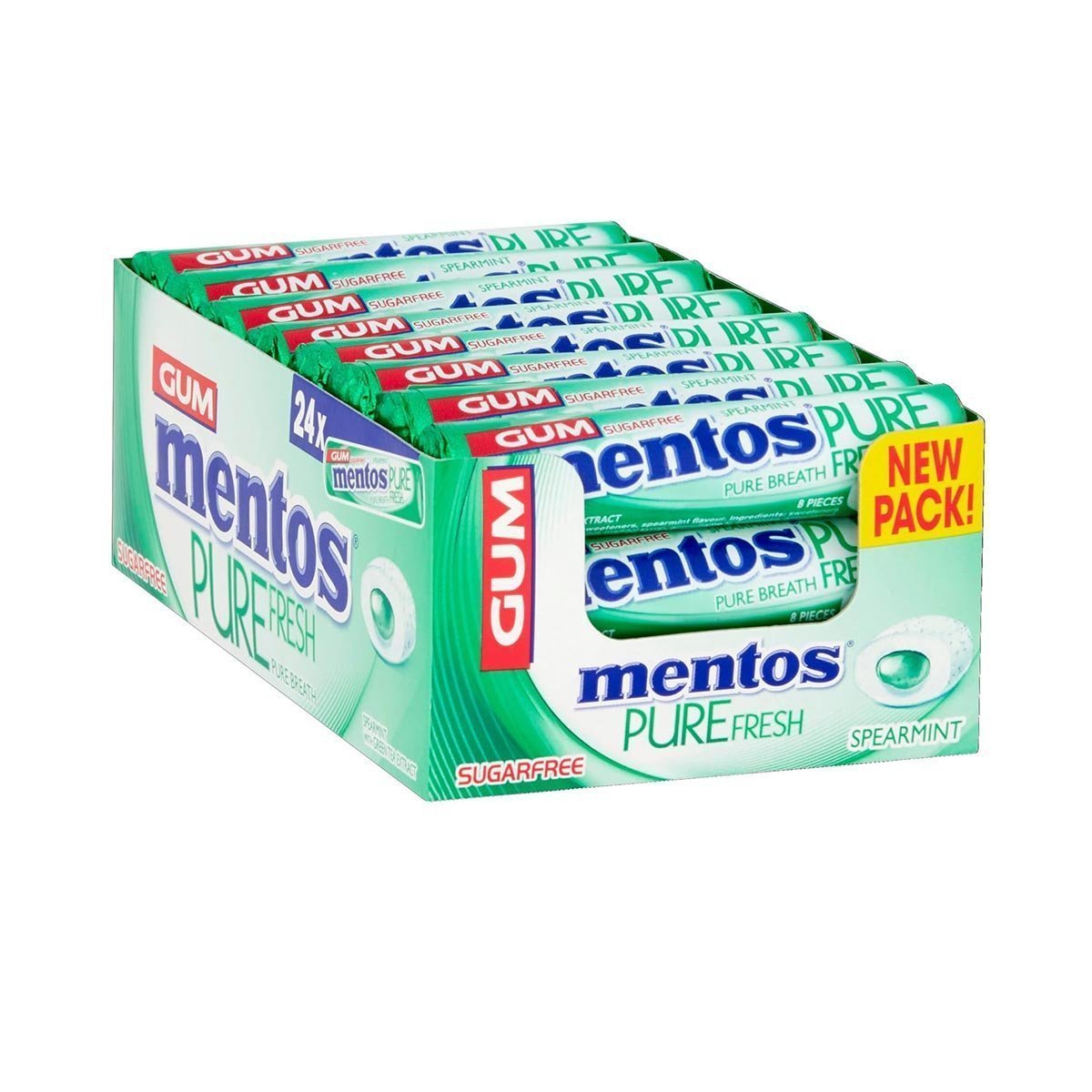 - Stock up and enjoy 24 rolls of Mentos Gum Pure Fresh Spearmint, making it an ideal choice for lovers of bubble gum