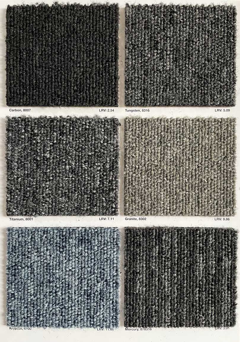 Furthermore, it is manufactured using “Envirobase” carpet tile backing, which features a minimum of 75% recycled material, supporting its environmental credentials.