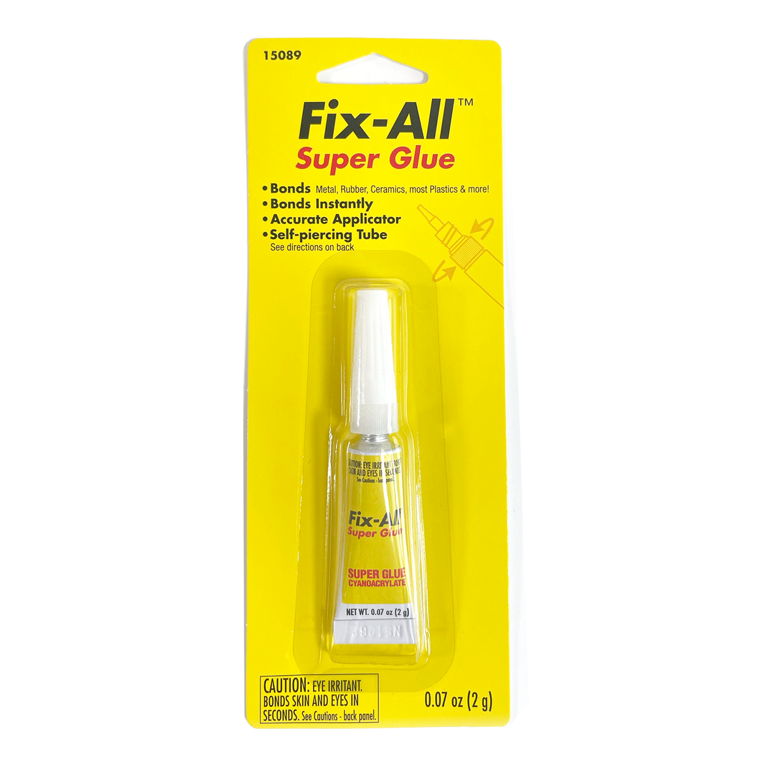 Fix-All generic super glue bonds instantly and sets in second Works Best on: Aluminium, Cardboard, Ceramic, China, Leather, Metal, Porcelain and Plastic